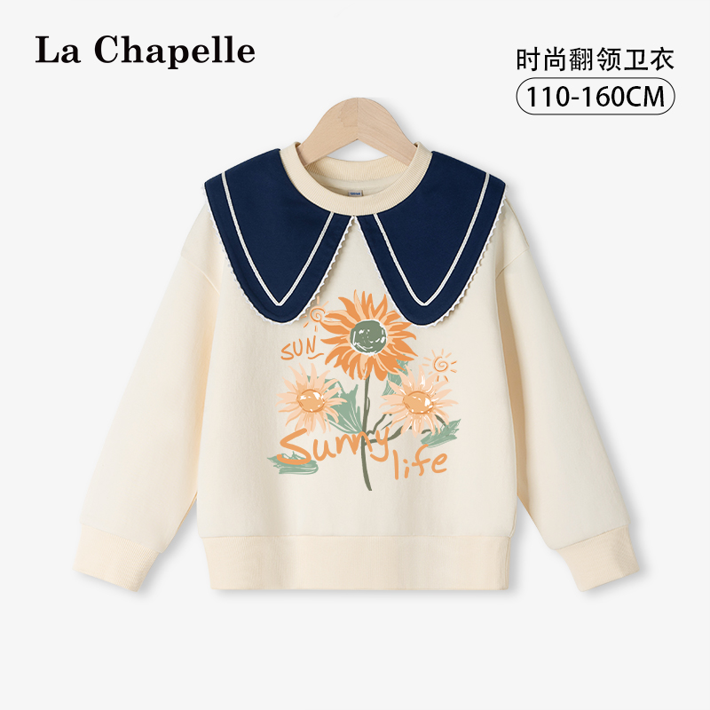 拉夏贝尔童装卫衣女童春秋女孩向日葵宽松秋装儿童秋季甜美套头衫