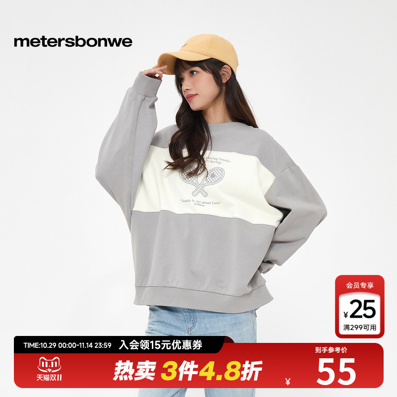 美特斯邦威重磅卫衣女春季舒适百搭套头时尚长袖甜美纯棉学院上Q