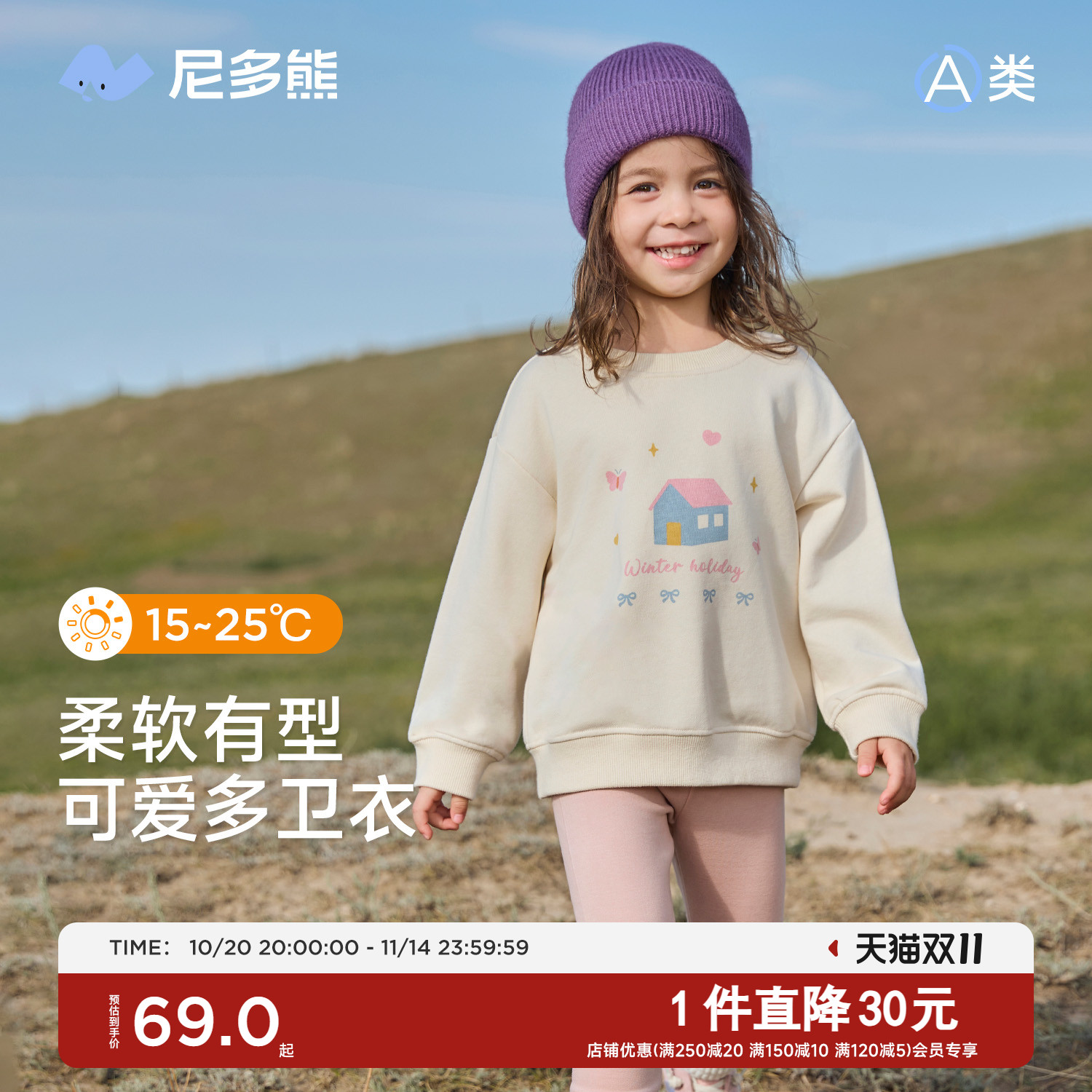 尼多熊2025秋季新款女童卫衣圆领女宝宝卡通套头长袖宽松秋装甜美