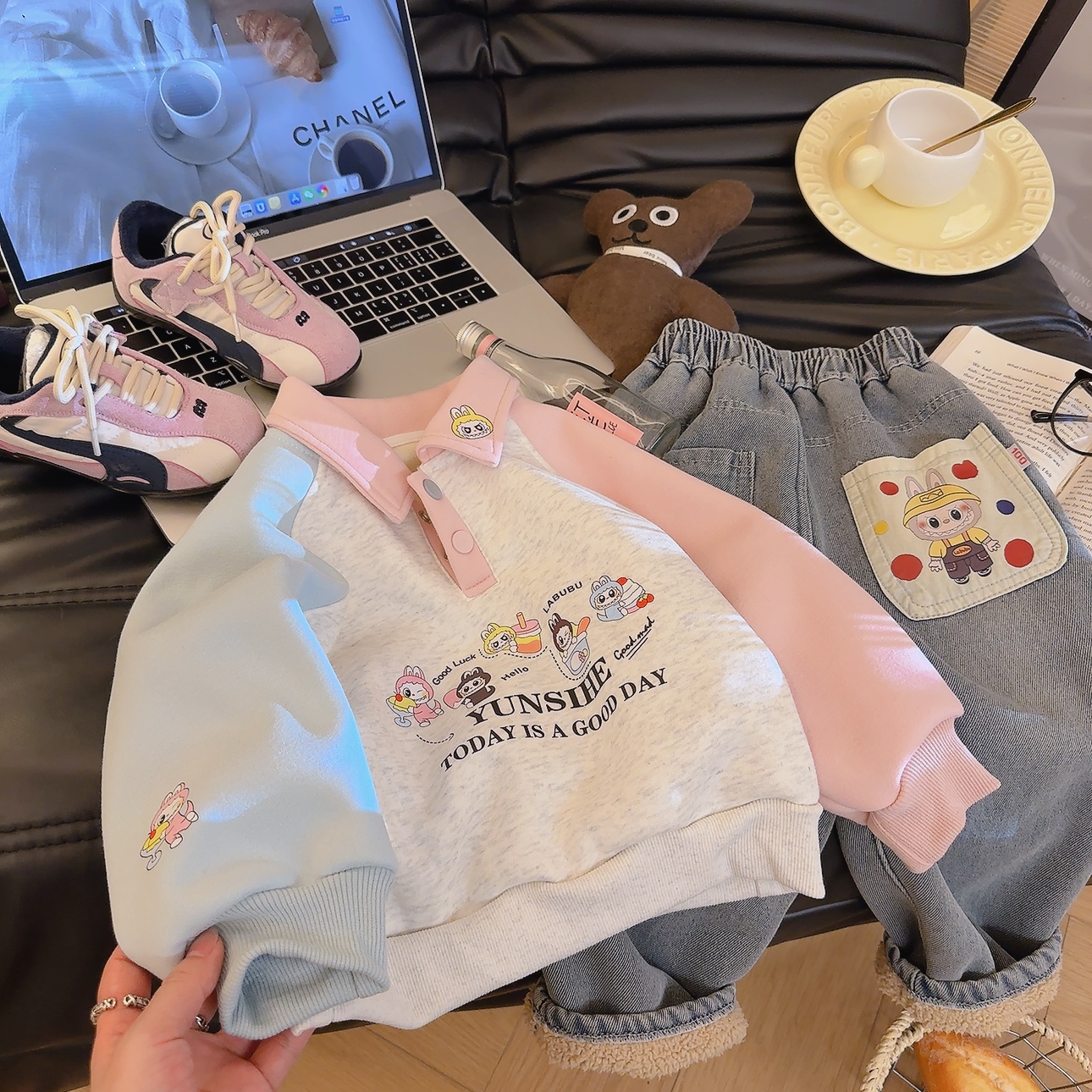 女童甜美可爱百搭卡通印花加绒套头卫衣2025冬季AYXY新款AYXY082