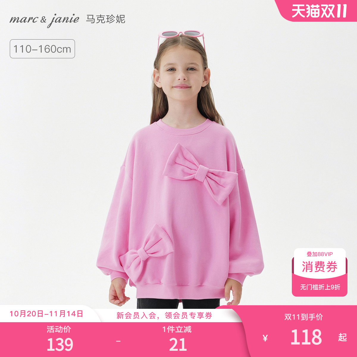 马克珍妮女童甜美立体蝴蝶结卫衣儿童套头衫2025年秋装新款551200