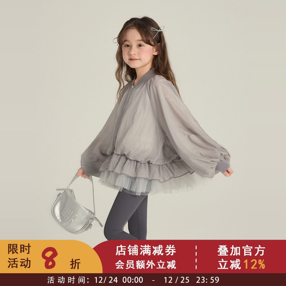 2025春秋新款中大女童韩版洋气公主风网纱下摆外套儿童花苞上衣潮
