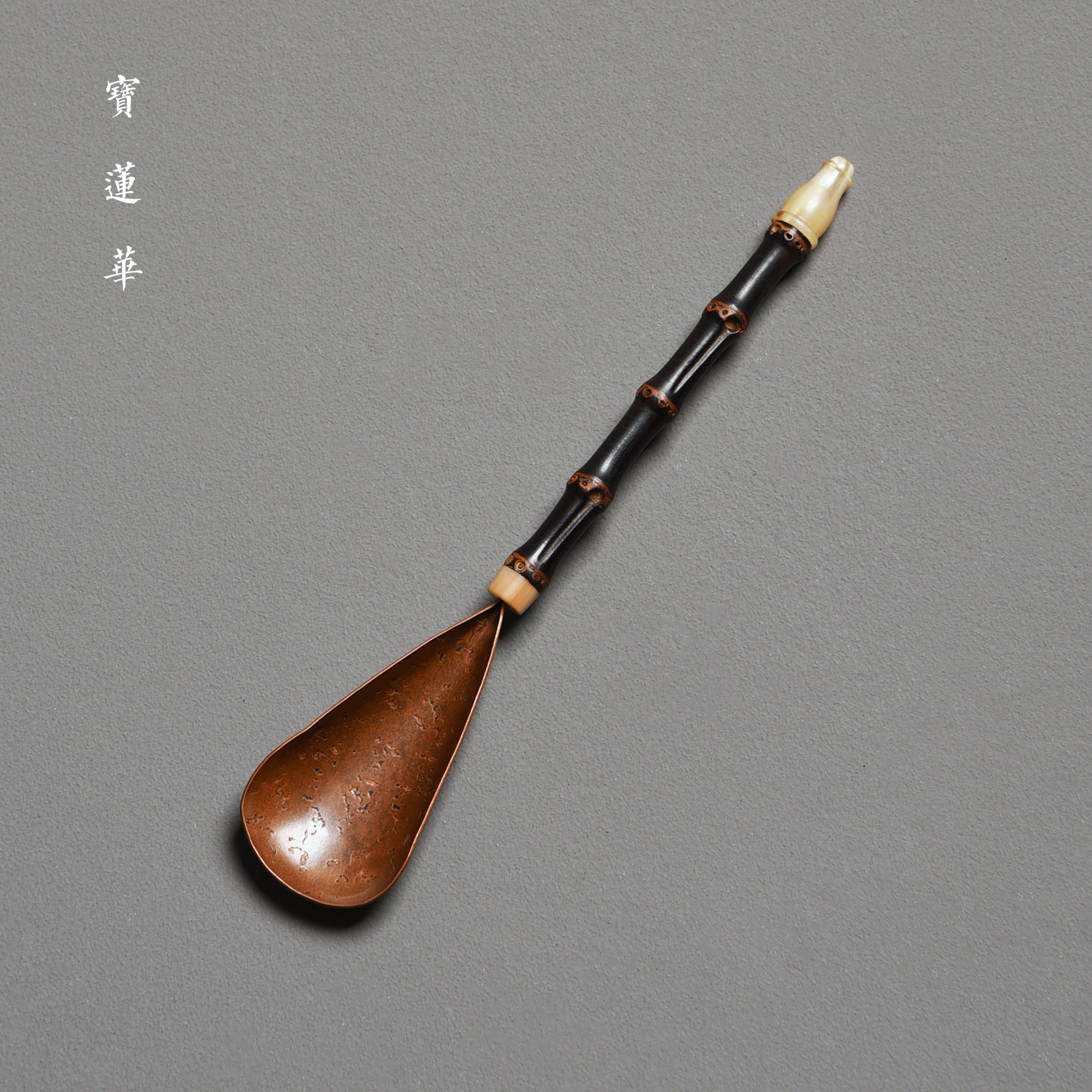 镶牛角紫竹柄紫铜茶勺 舀茶叶勺茶铲 抹茶勺咖啡勺香粉勺茶匙茶则