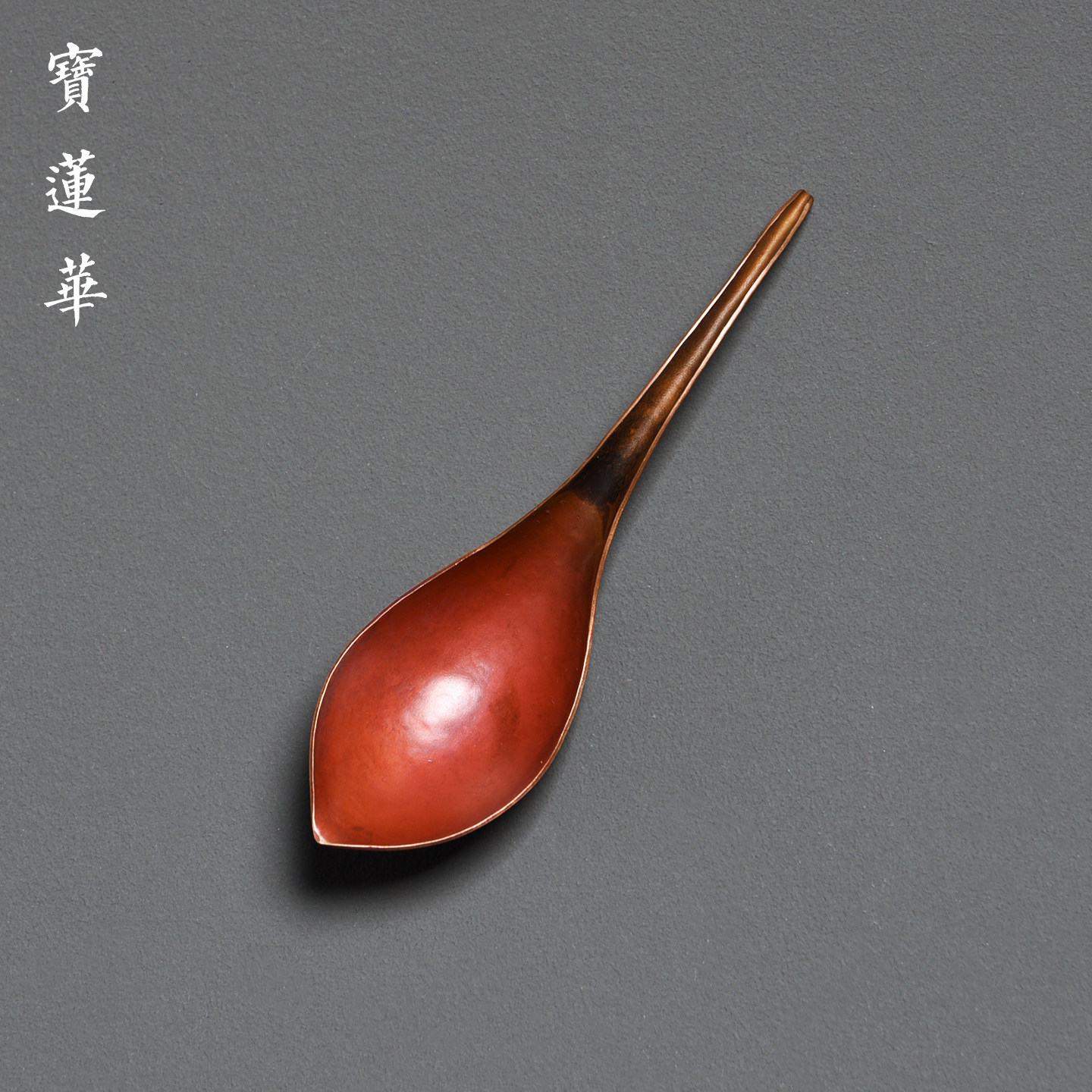 花瓣手工紫铜茶勺 茶叶勺子茶匙茶铲茶则 舀茶水铜勺子茶道零配件