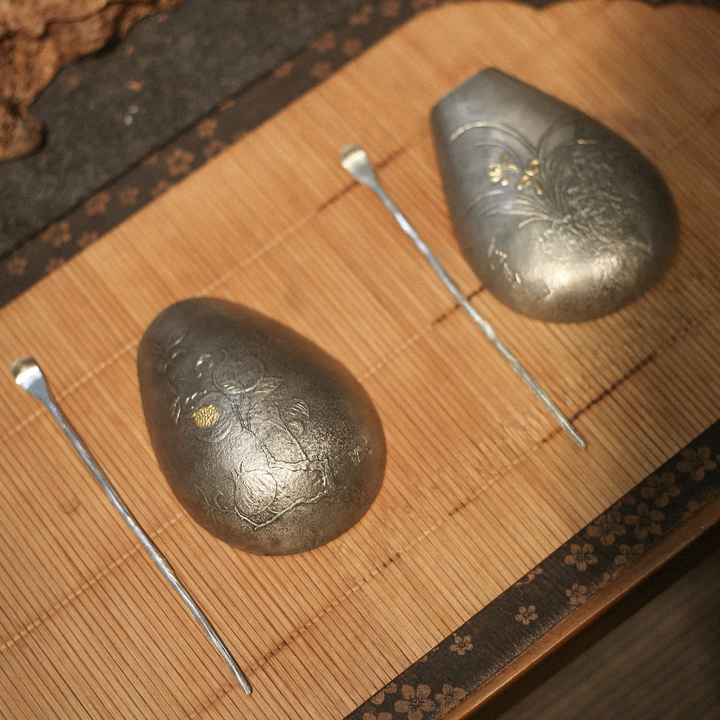 里作 纯锡茶则茶拨两件套日式手作茶拨茶匙茶道配件新中式赏茶荷