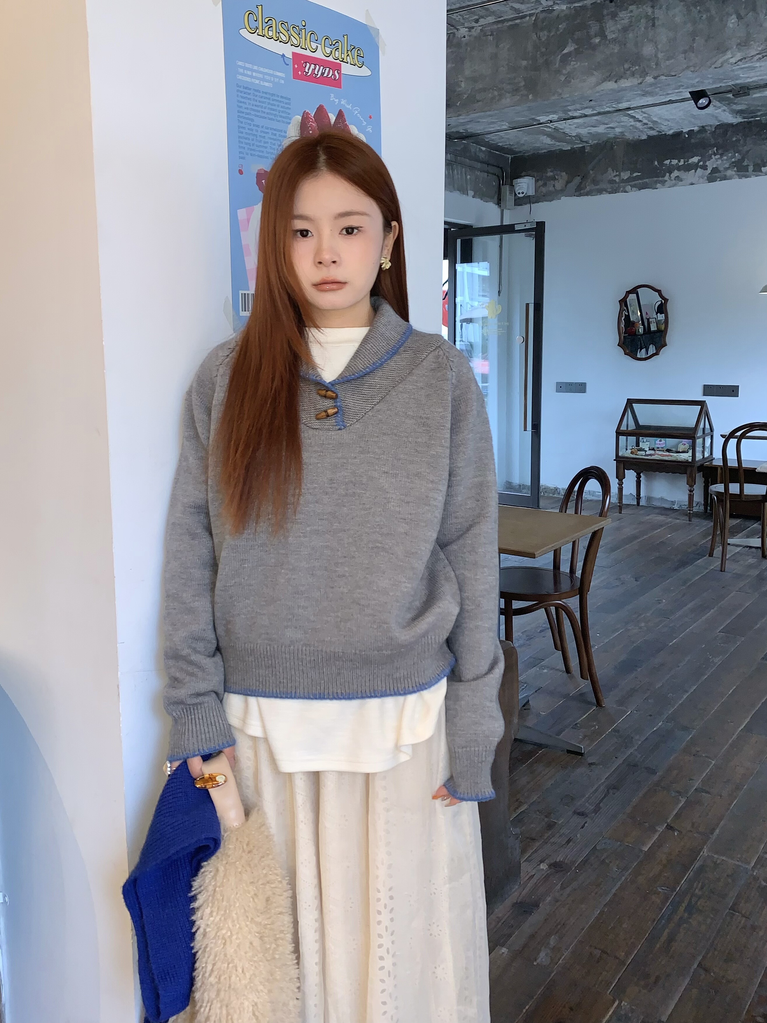 - 秋冬韩版新款女士毛衣套头中长款前短后长宽松大码针织衫打底上衣