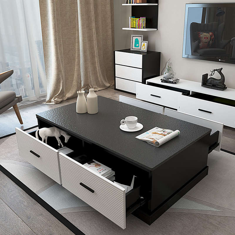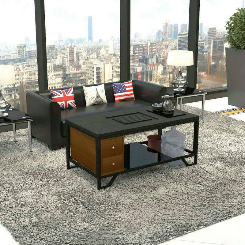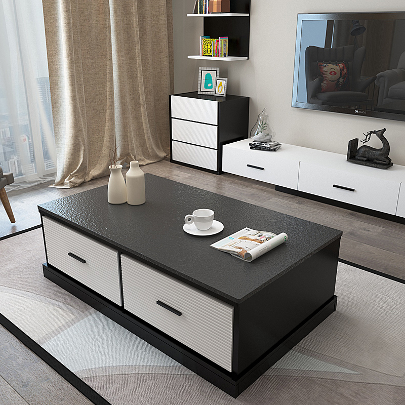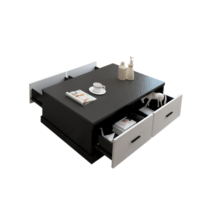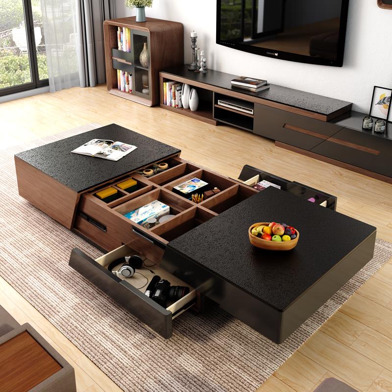 北欧多功能升降折叠茶几餐桌两用小户型黑色火烧石茶几电视柜组合
