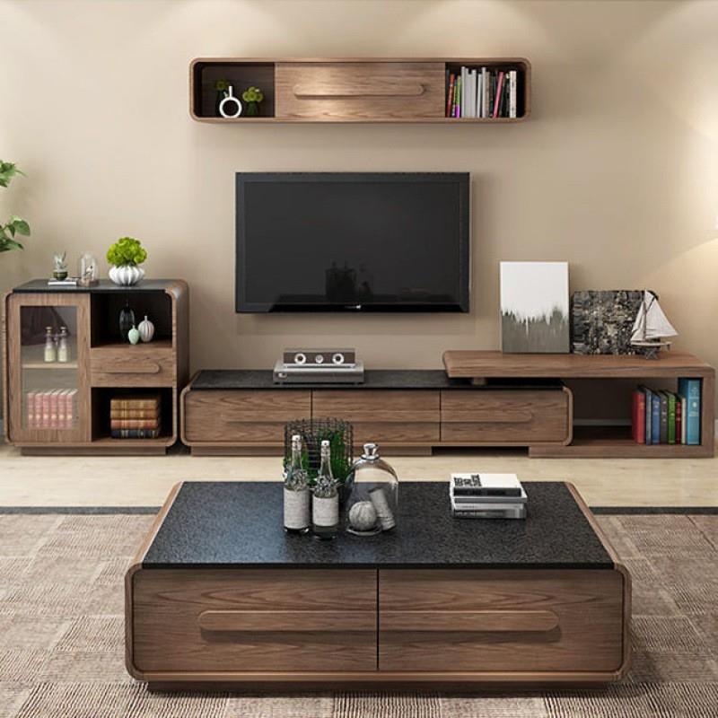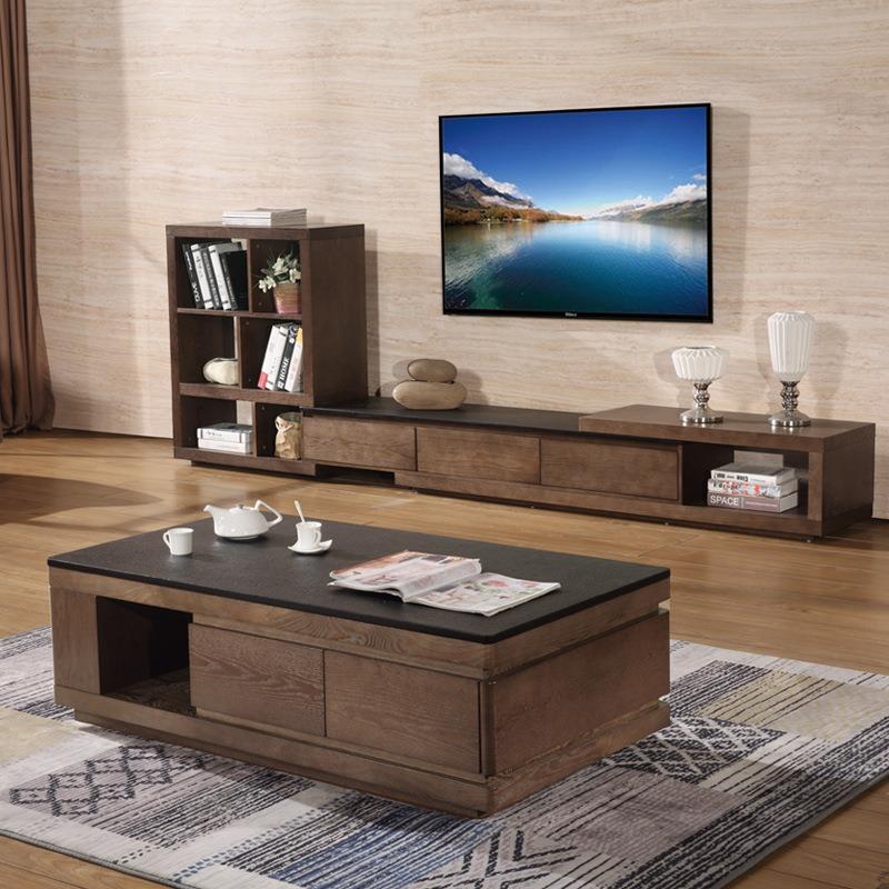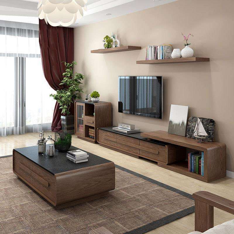火烧石茶几电视柜组合客厅套装现代小户型伸缩地柜储物边柜小户型