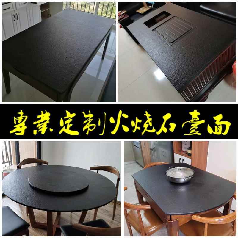 火烧石面板定制茶几电视柜餐桌台面家用转盘功夫茶台面板室外黑色