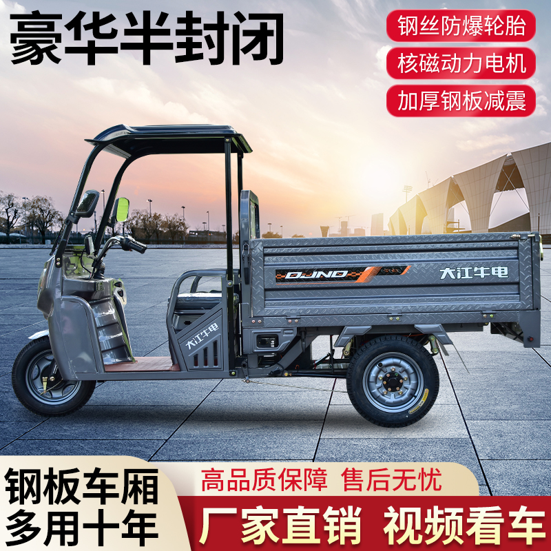 大江电动三轮车碟刹货运半封闭核磁动力成人拉货农用载重王可上牌