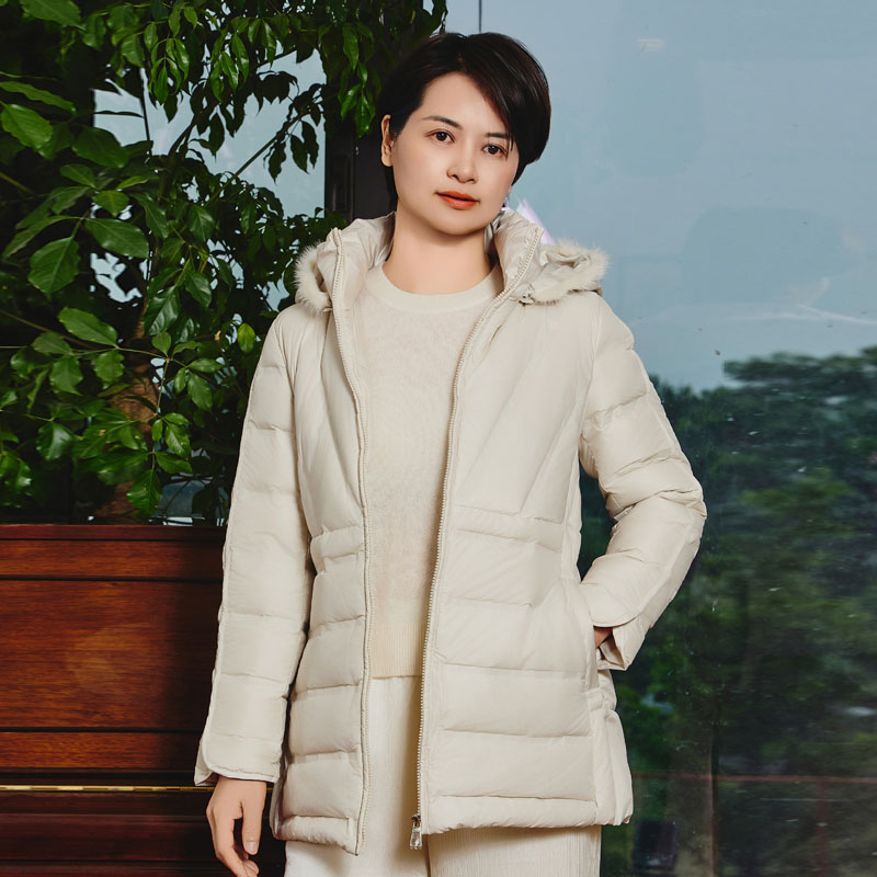 Lucidy/鲁思蒂带毛领羽绒服女冬季2024新款加厚中长款白鸭绒外套