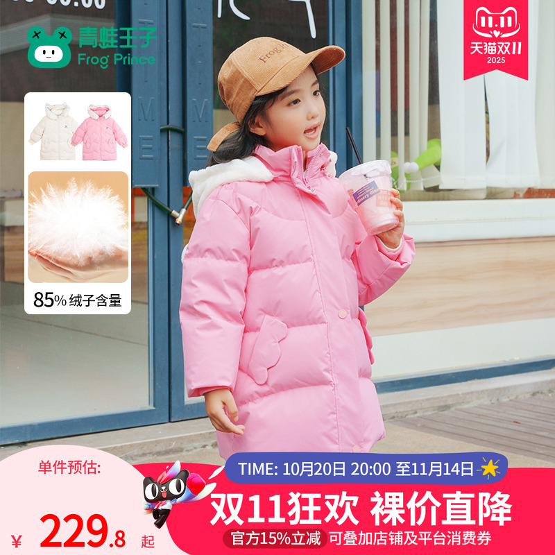 青蛙王子童装女童中长款羽绒服冬季新款宝宝冬装小女孩带毛领外套