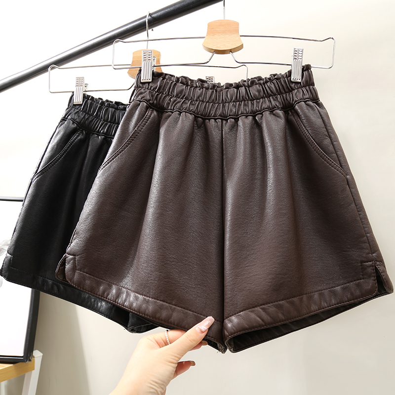 皮短裤女2025年新款秋冬大码高腰显瘦百搭黑色PU皮裤子外穿靴裤潮