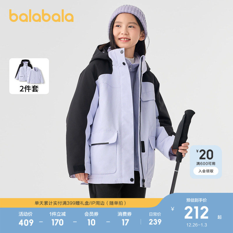 巴拉巴拉童装儿童外套女童棉服秋冬装2025新款两件套加绒保暖户外