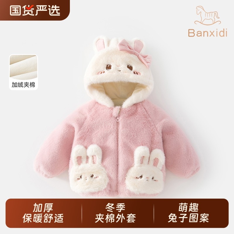 班喜迪女童外套冬装棉服2025新款女宝宝加绒上衣冬季儿童夹棉衣服