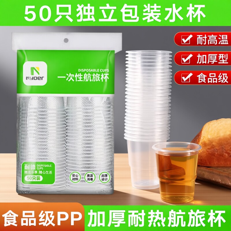 一次性杯子透明硬塑料杯加厚航空杯家用茶水杯太空杯食品级耐高温