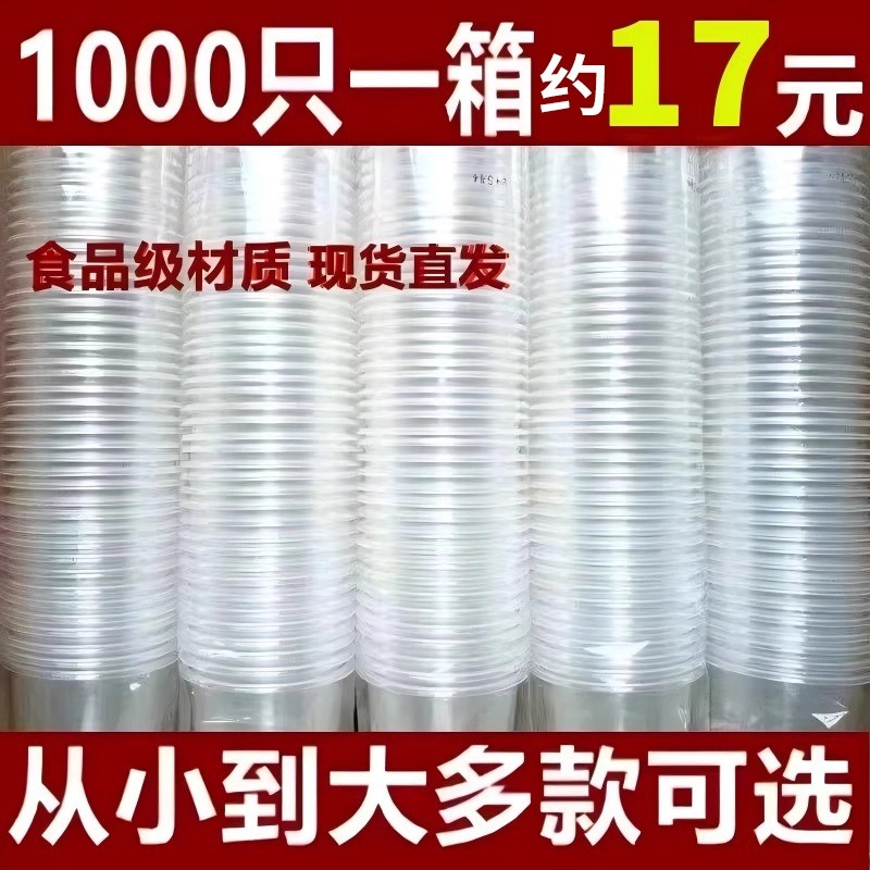 一次性杯子塑料杯加厚家用水杯食品级1000只透明商用批发整箱茶杯