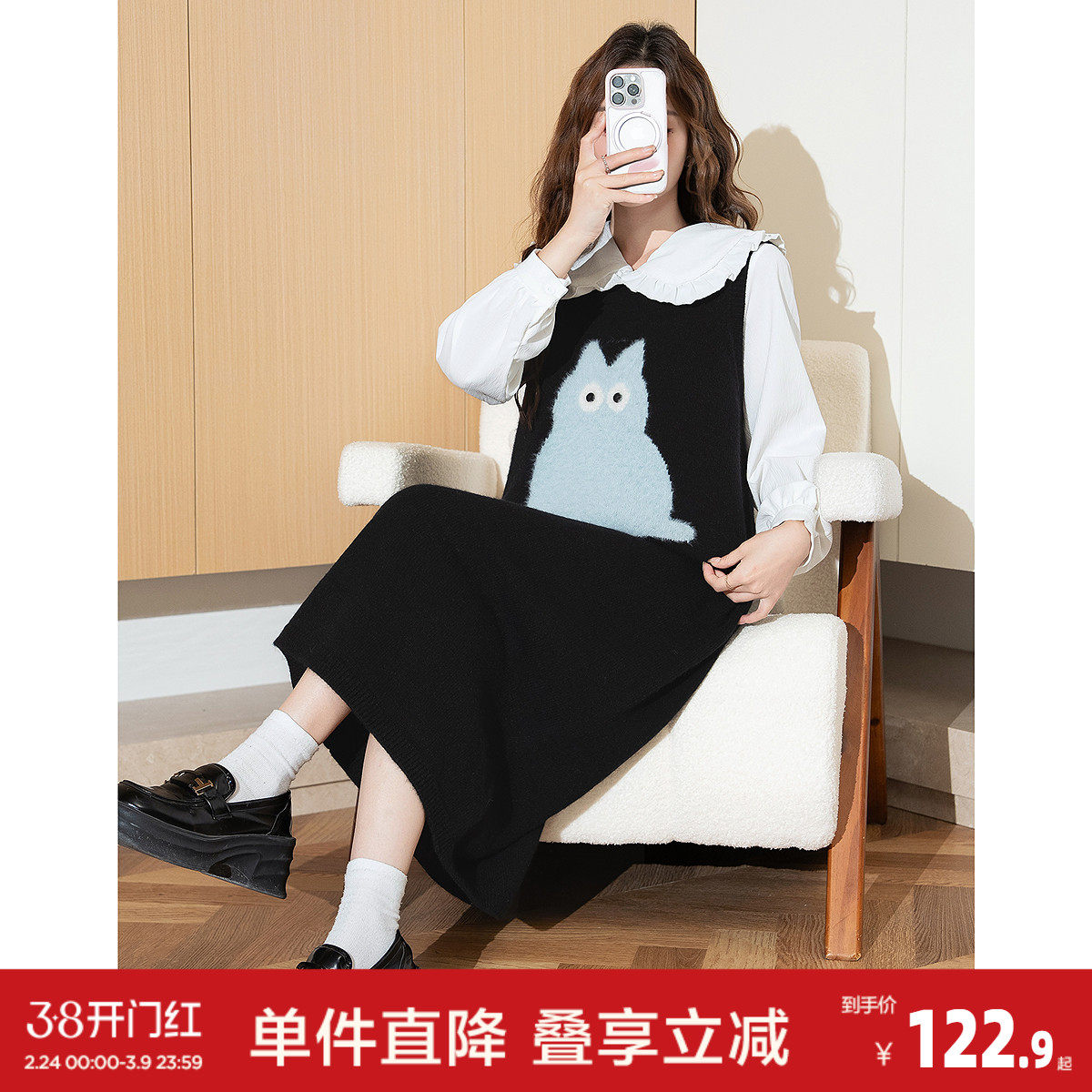 唐狮黑色背心连衣裙女秋装2026新款针织毛衣裙背心裙中长款裙子X2