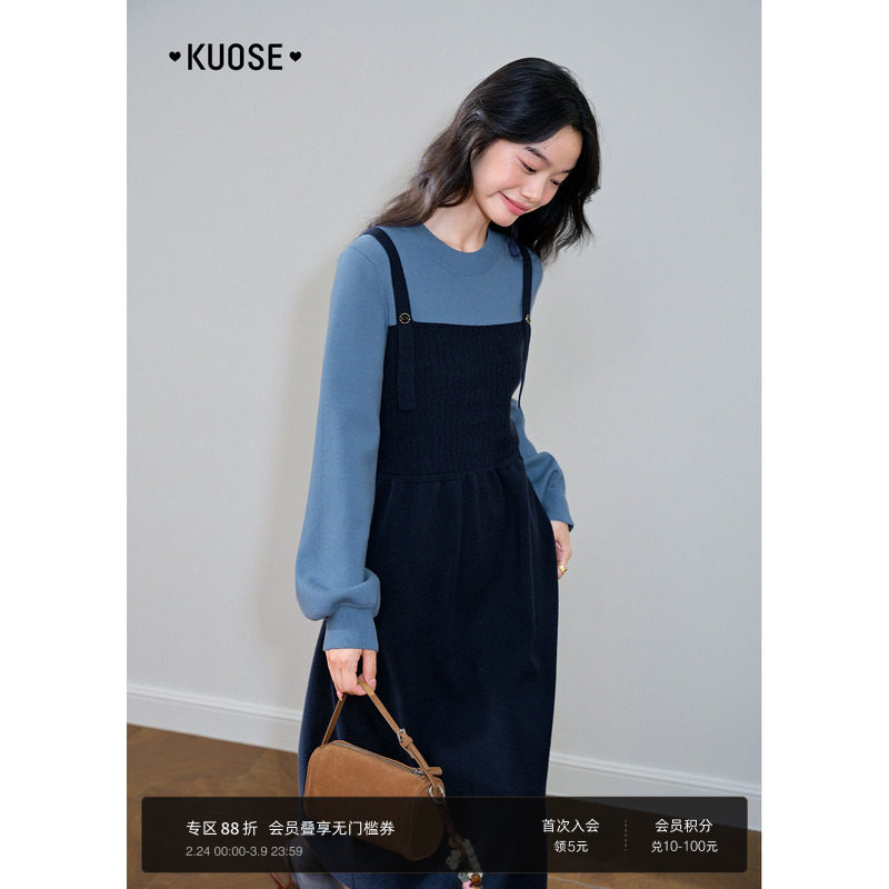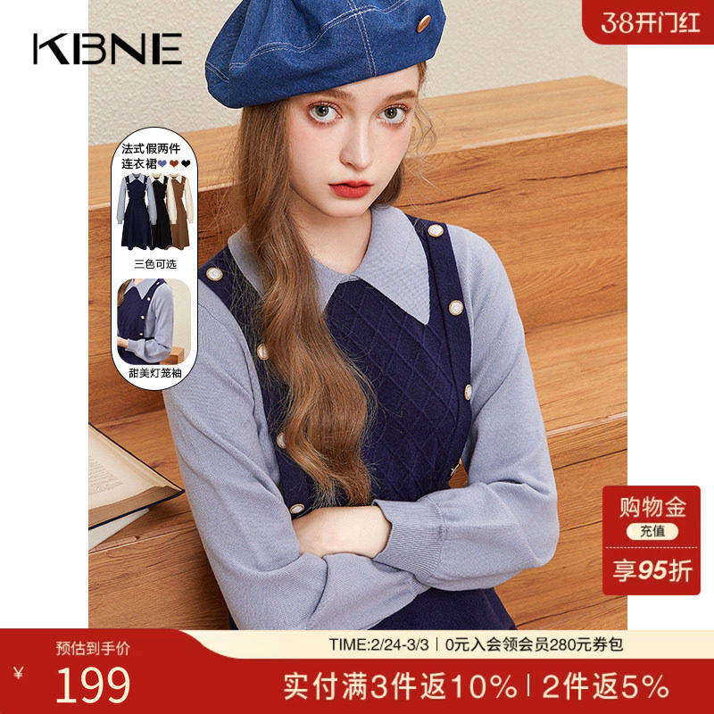 KBNE连衣裙女长袖针织毛衣裙气质秋冬新款假两件气质女神范裙子