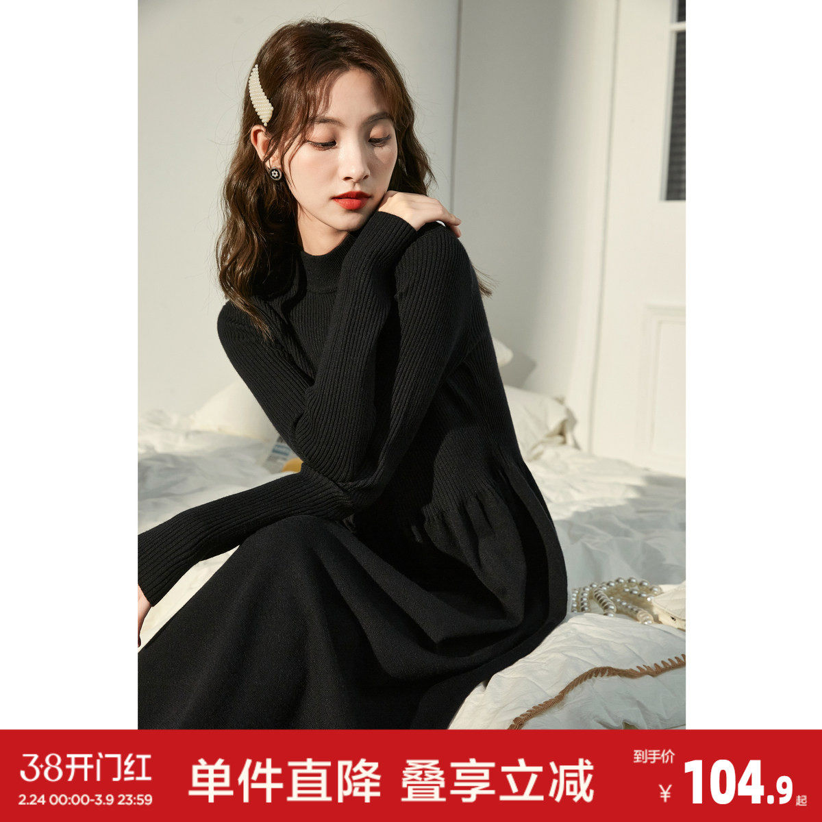 【春节不打烊】2026秋冬毛衣遮肉显瘦内塔半高领针织连衣裙小黑子