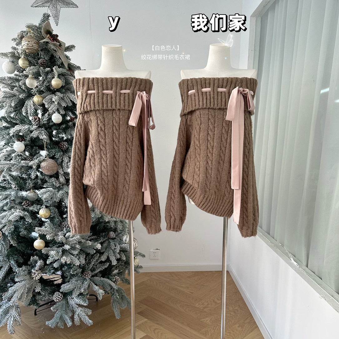 柒月末【白色恋人】蝴蝶结三色绞花绑带oversize针织毛衣裙