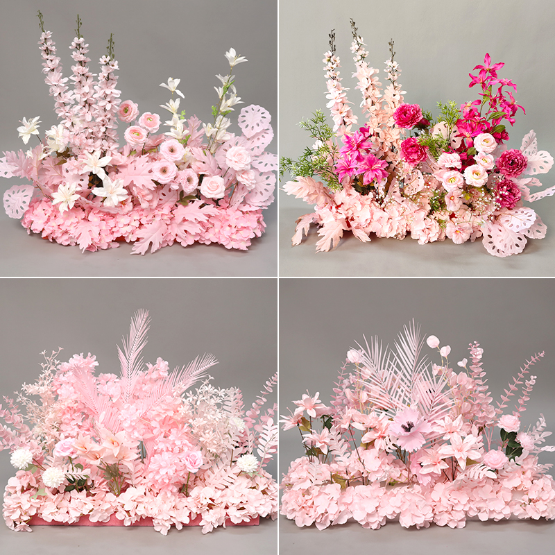 婚庆粉色仿真花花排场景婚礼花排绢花仿真地排花装饰花艺假花花艺