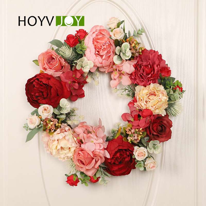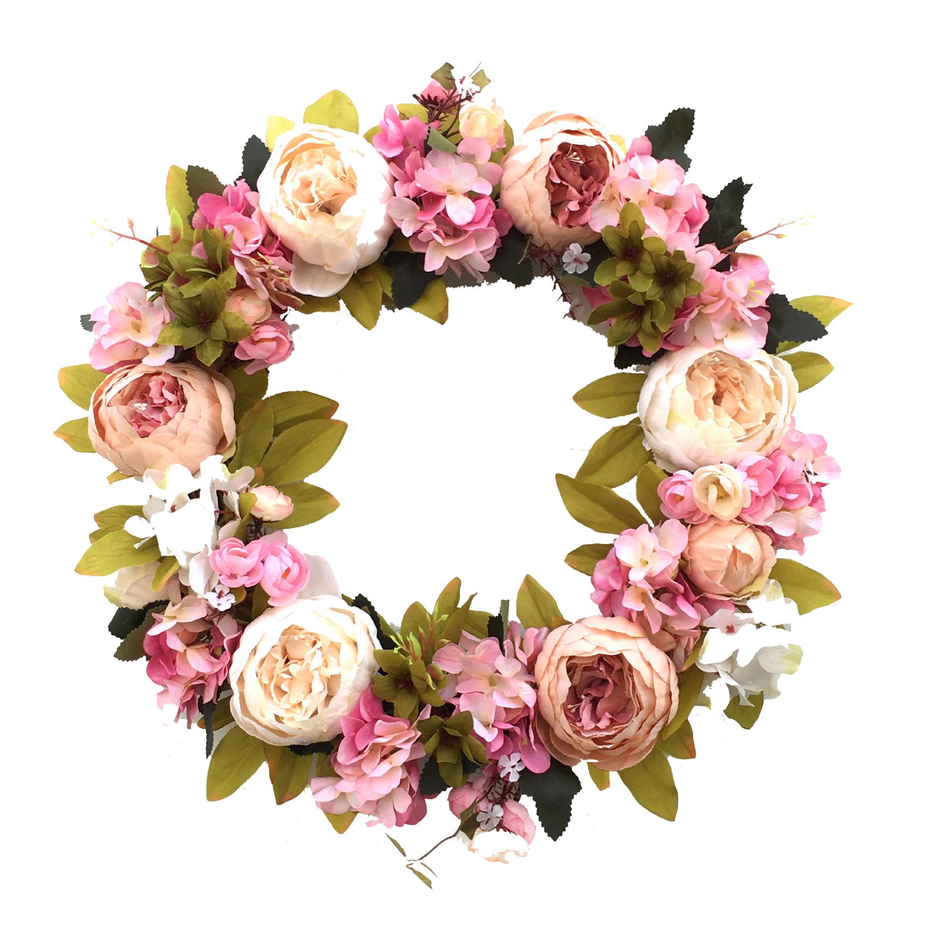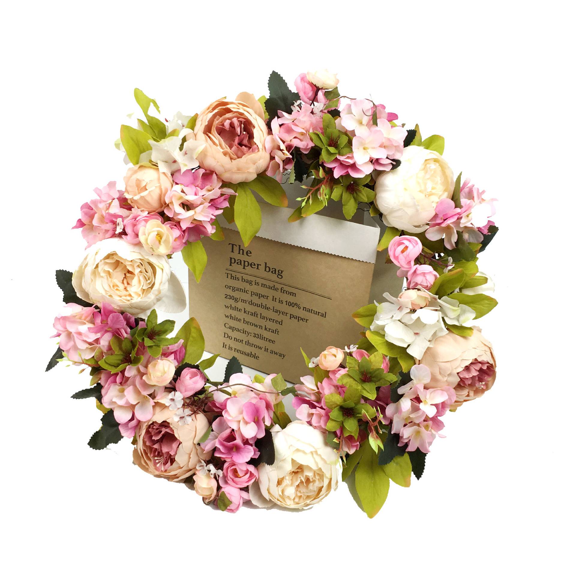 牡丹仿真花环45cm门饰门环装饰花绢花仿真花壁饰挂饰亚马逊货源
