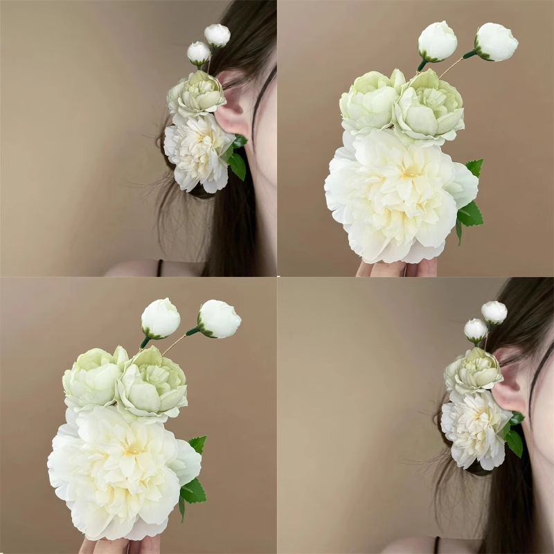 古风绢花仿真牡丹花发夹女2025新款超仙氛围感侧边夹外出拍照头饰