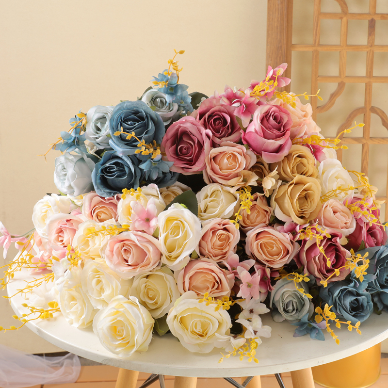 假花绢花仿真花欧式玫瑰花客厅家居摆设餐桌装饰花怀旧大把束花艺