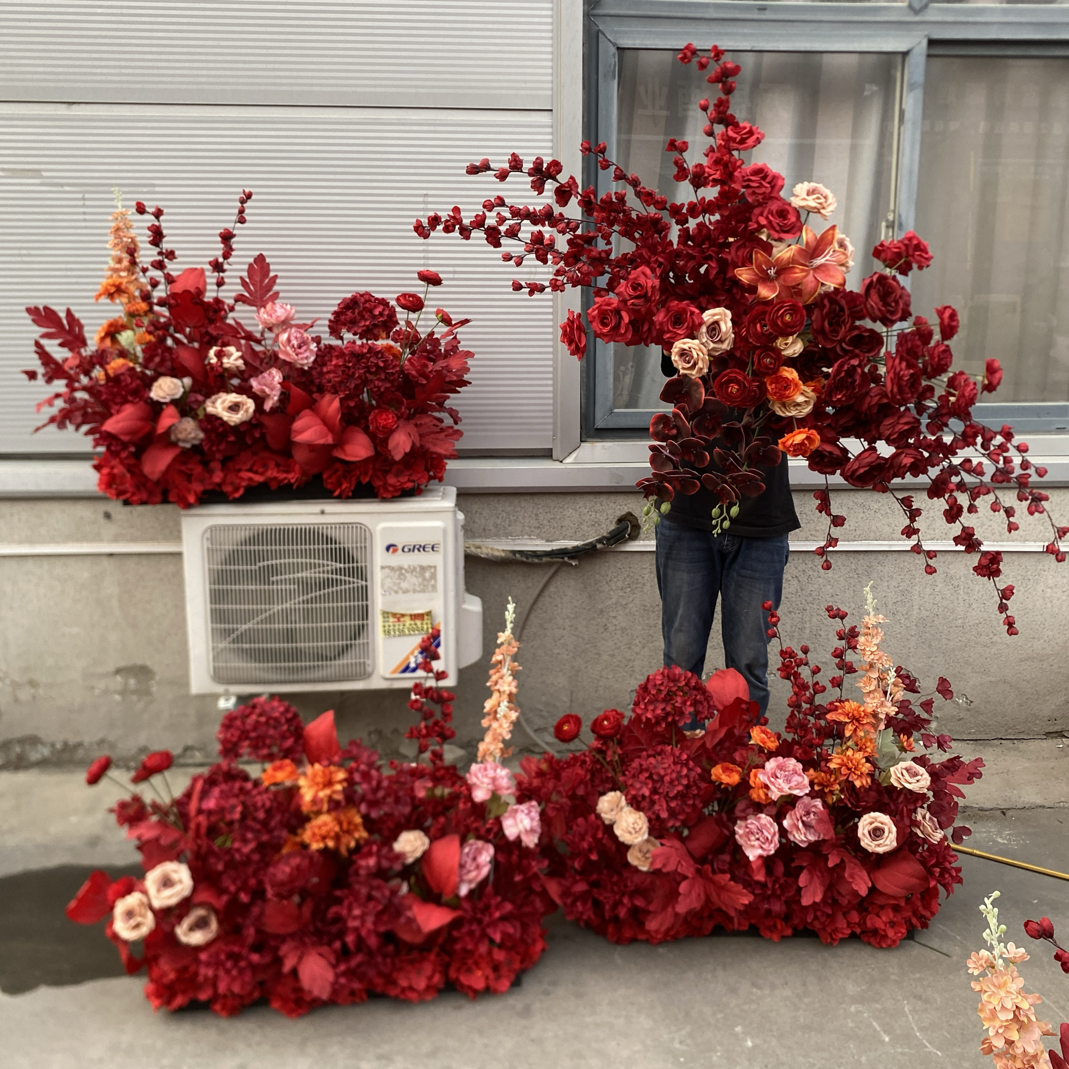 婚庆粉色仿真花花排场景婚礼花排绢花仿真地排花装饰花艺婚庆假花