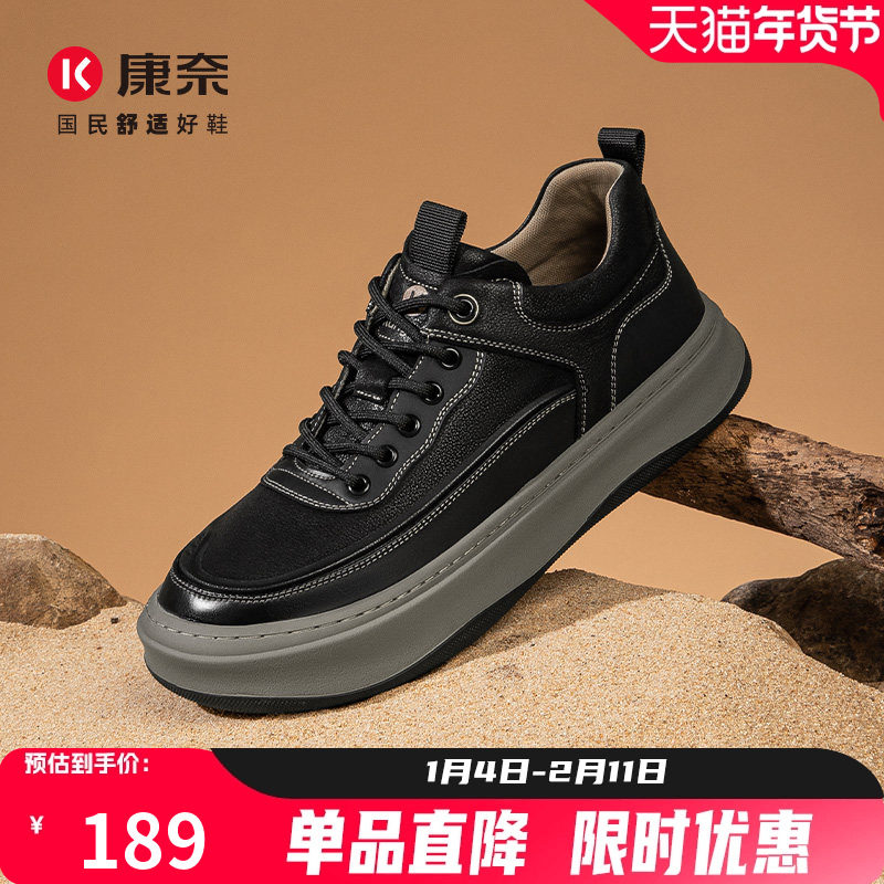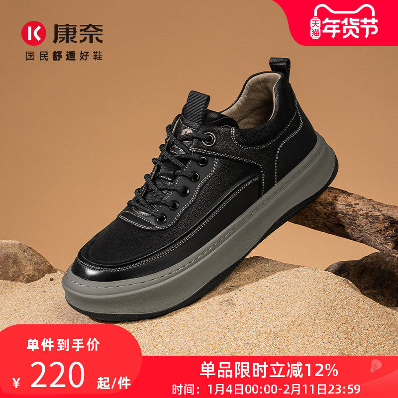 金利来男鞋 潮流厚底休闲皮鞋男士舒适真皮运动鞋日常百搭户外鞋