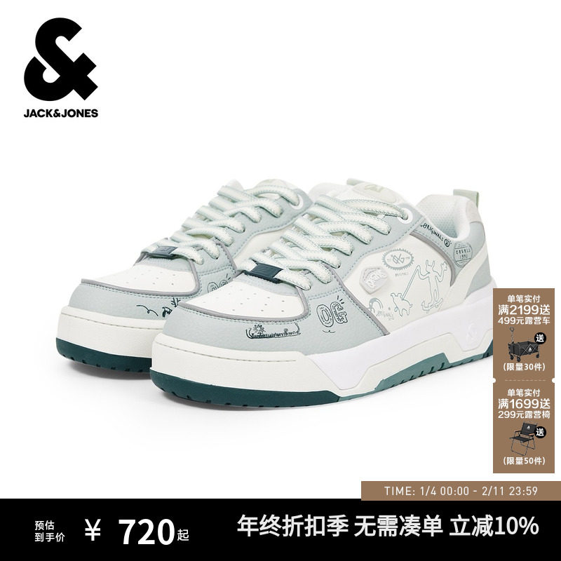 杰克琼斯男装秋季新款涂鸦团胶印撞色拼接日常休闲男鞋2253C8002