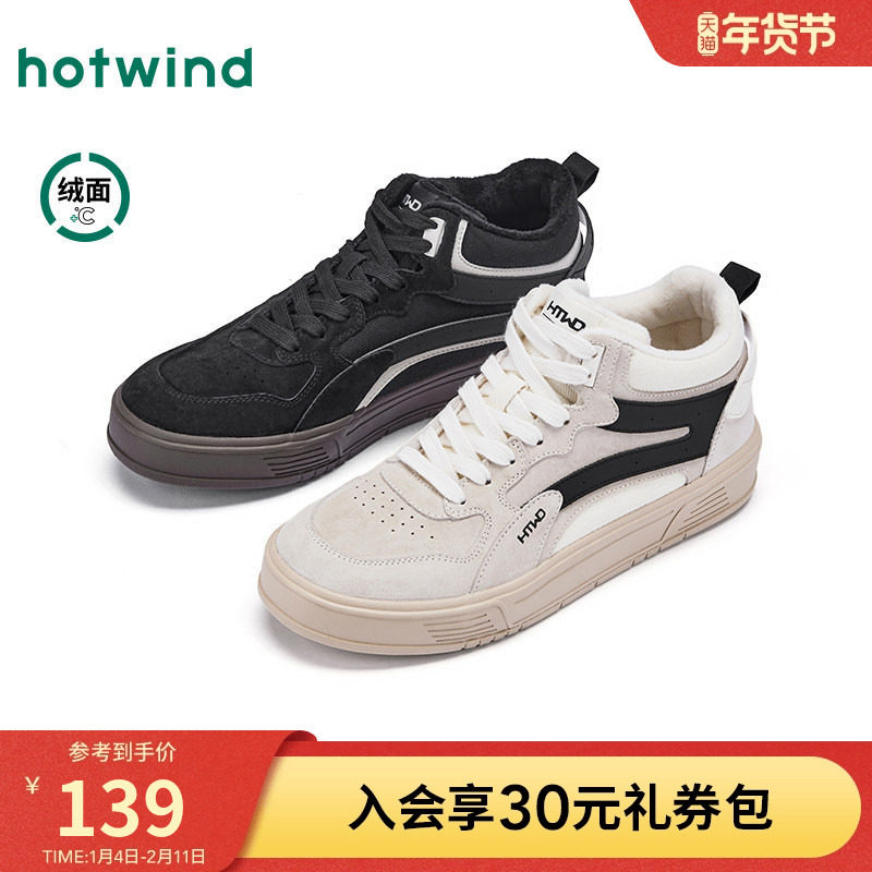 热风男鞋2025年冬季新款男士日常通勤休闲板鞋百搭厚底高帮鞋子