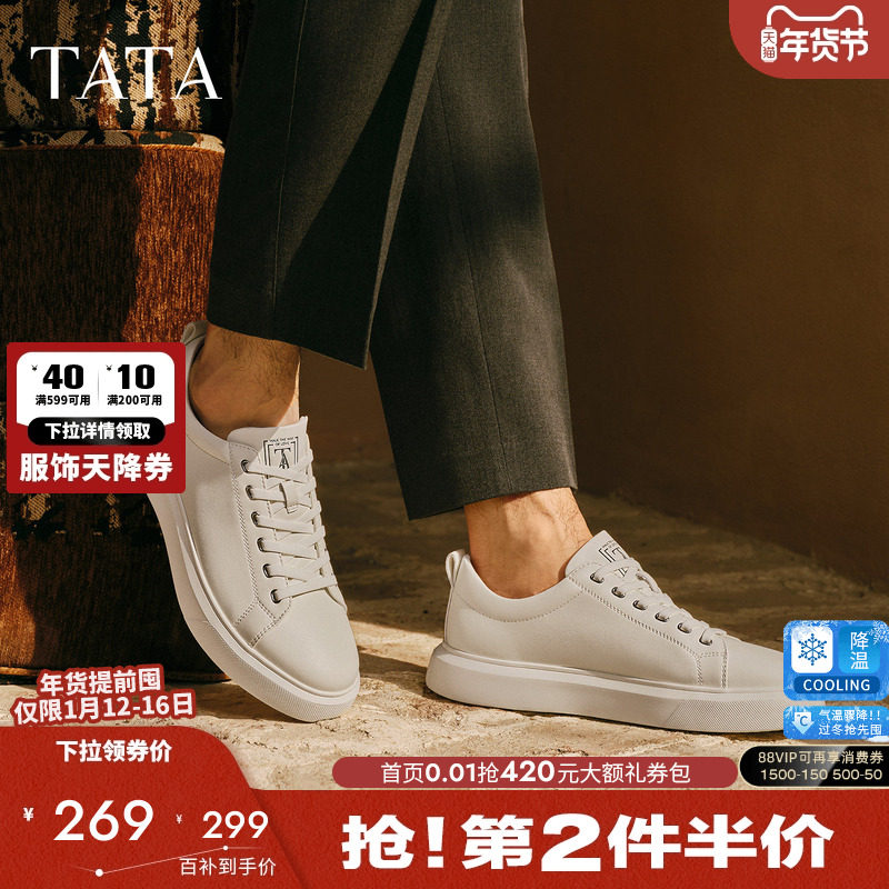 Tata他她男鞋休闲百搭板鞋商务软底男士小白鞋2025秋新款日常通勤
