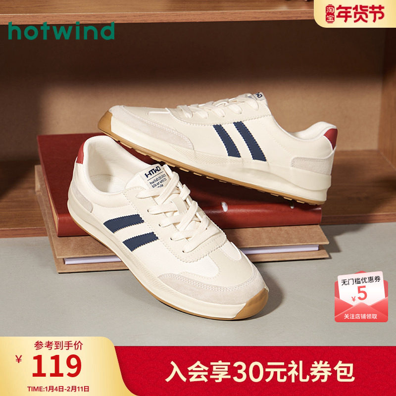 热风男鞋2025年春秋新款男士休闲鞋百搭舒适德训鞋拼色日常男鞋子
