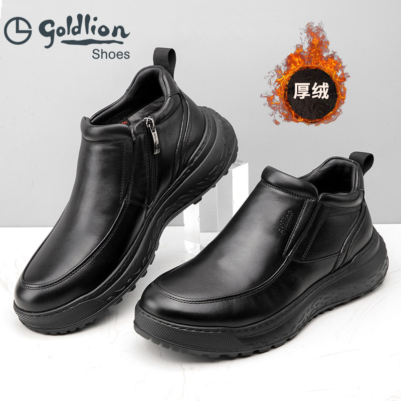 金利来男鞋冬轻轻便厚底真皮加绒加厚保暖日常商务休闲男士大棉鞋