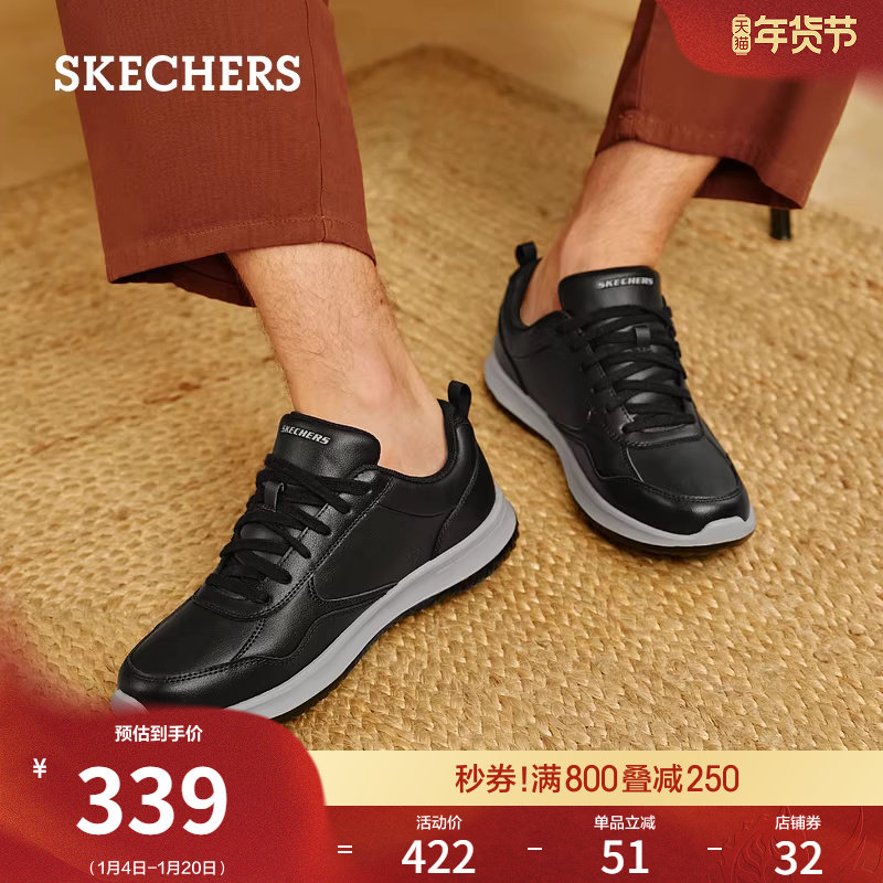 斯凯奇秋冬男鞋经典商务休闲鞋黑色时尚百搭皮鞋日常百搭通勤板鞋