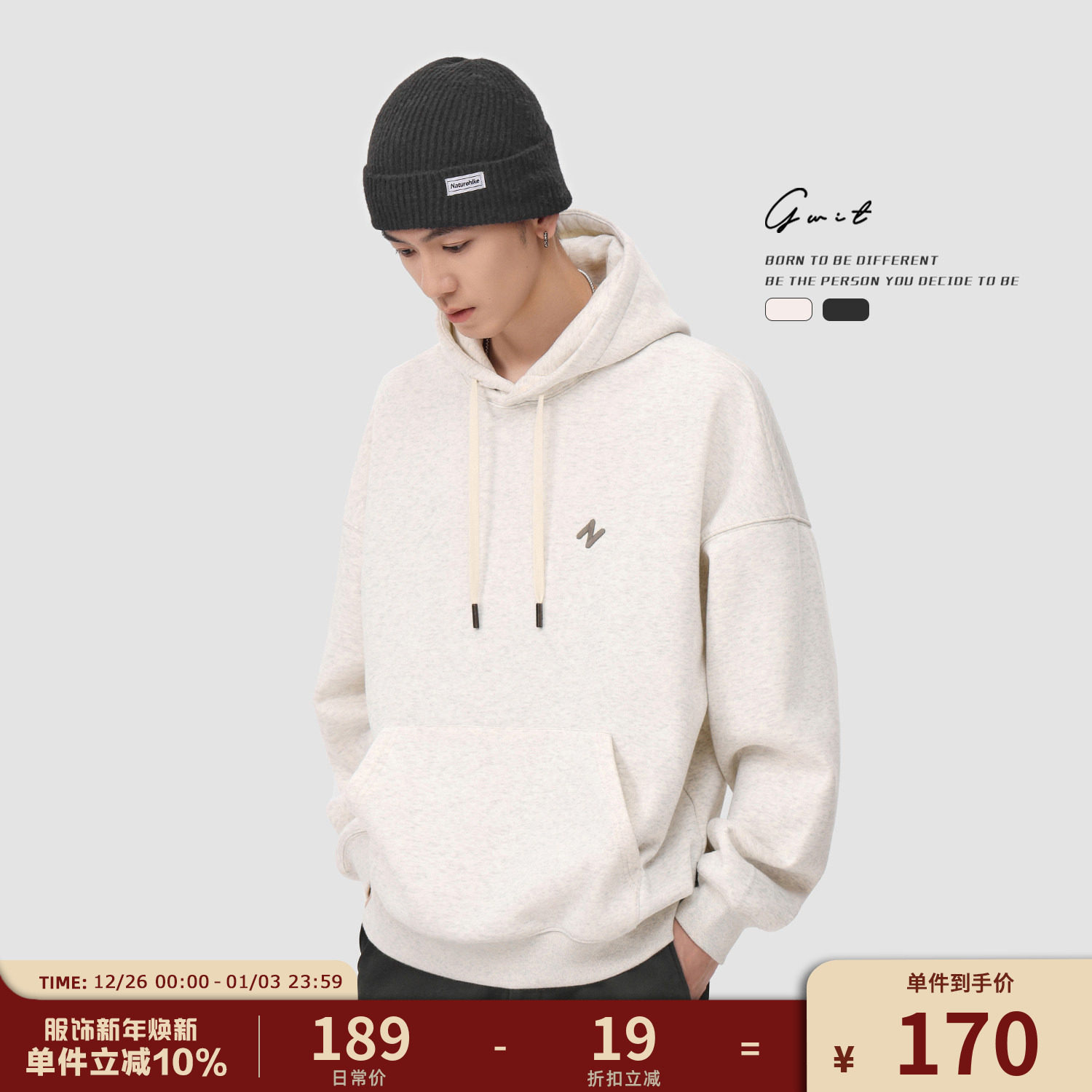 GWIT 基础款潮牌刺绣冬季保暖套头打底衫帽衫加绒加厚连帽卫衣男