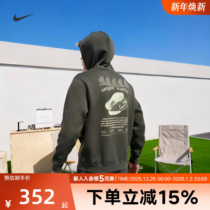 Nike耐克男子加绒套头连帽衫冬季新款针织休闲柔软卫衣HV1217-355