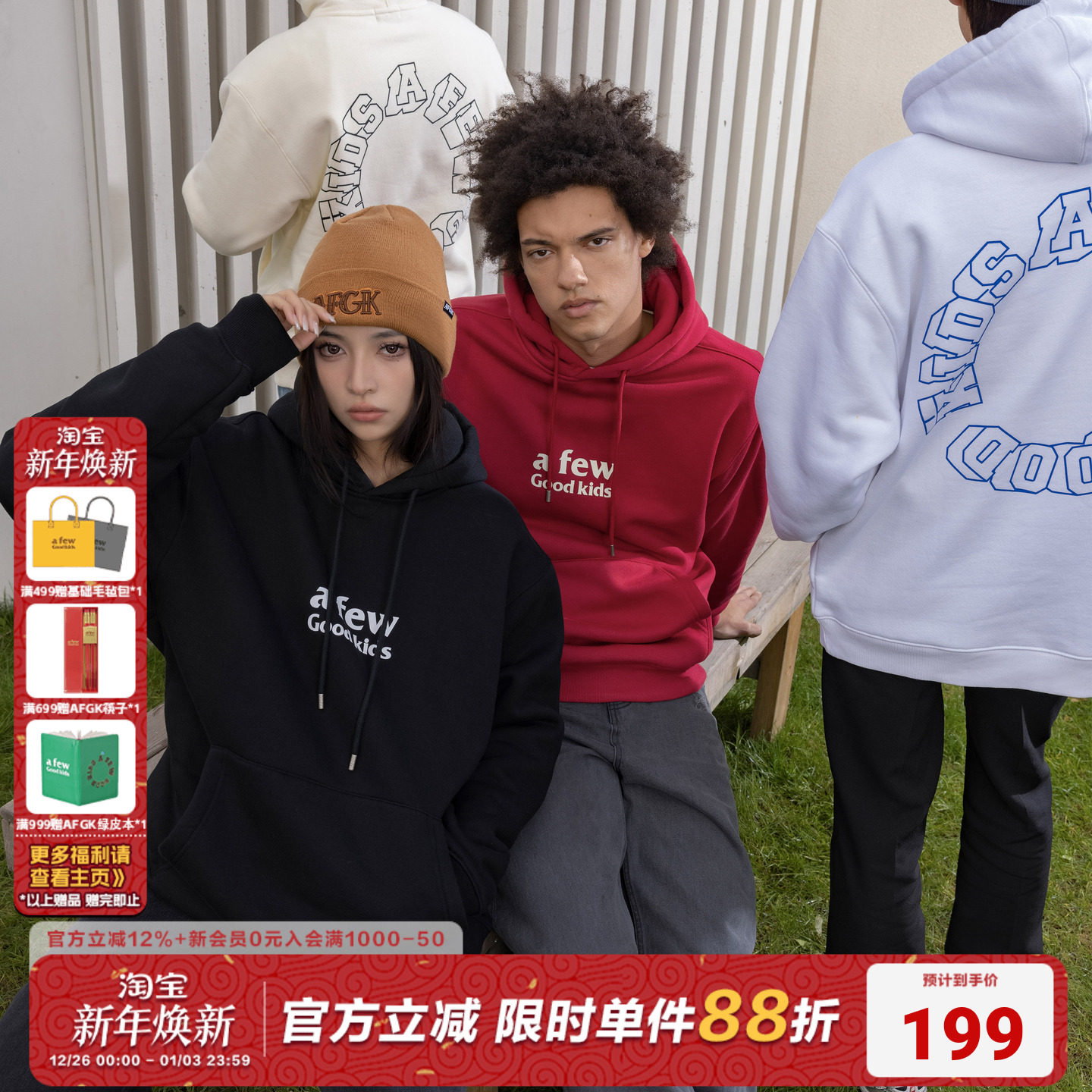 AFGK国潮美式重磅加绒连帽卫衣男女潮牌情侣套头帽衫春秋休闲上衣