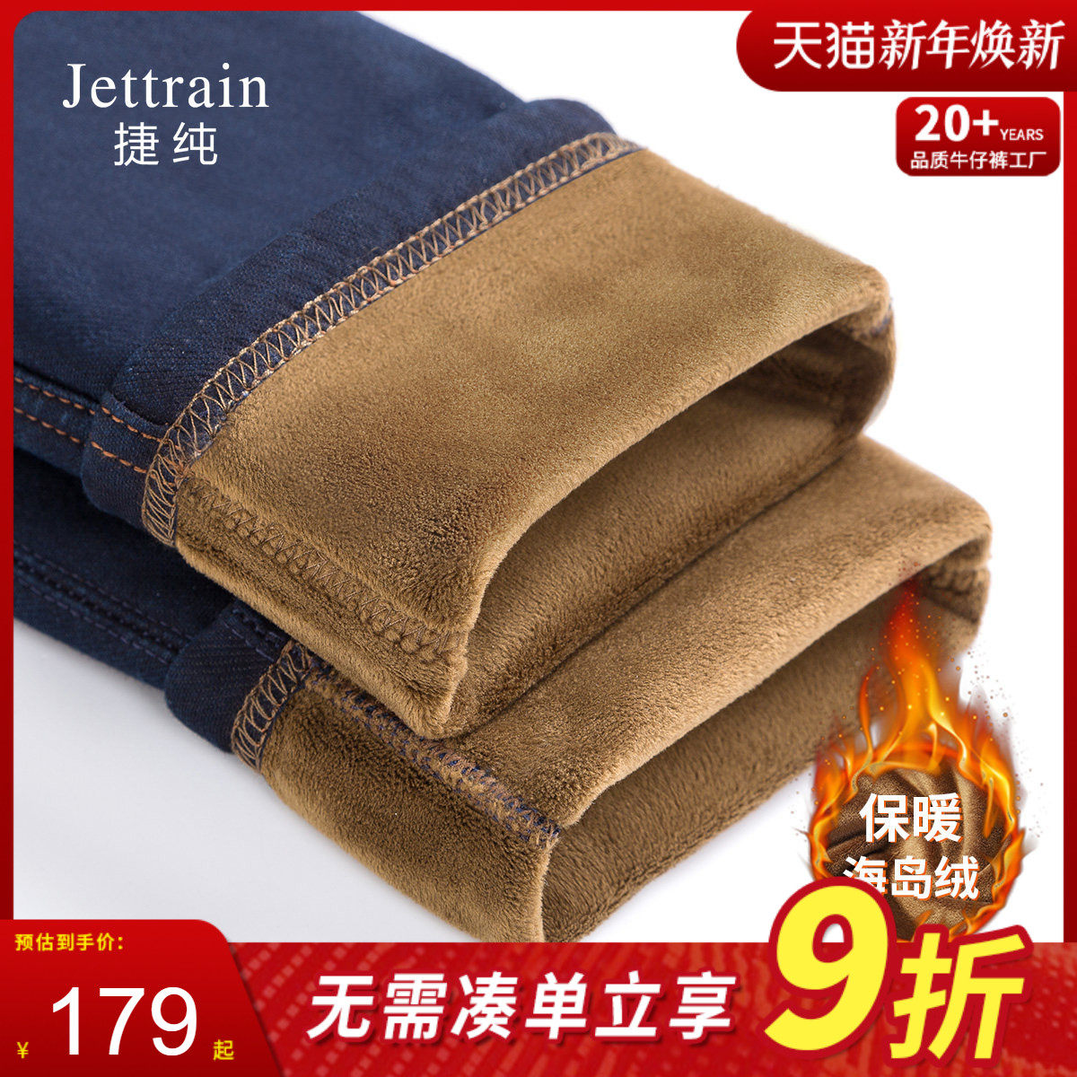 捷纯加绒牛仔裤女士冬季加厚高腰保暖小脚裤外穿九分妈妈新款裤子