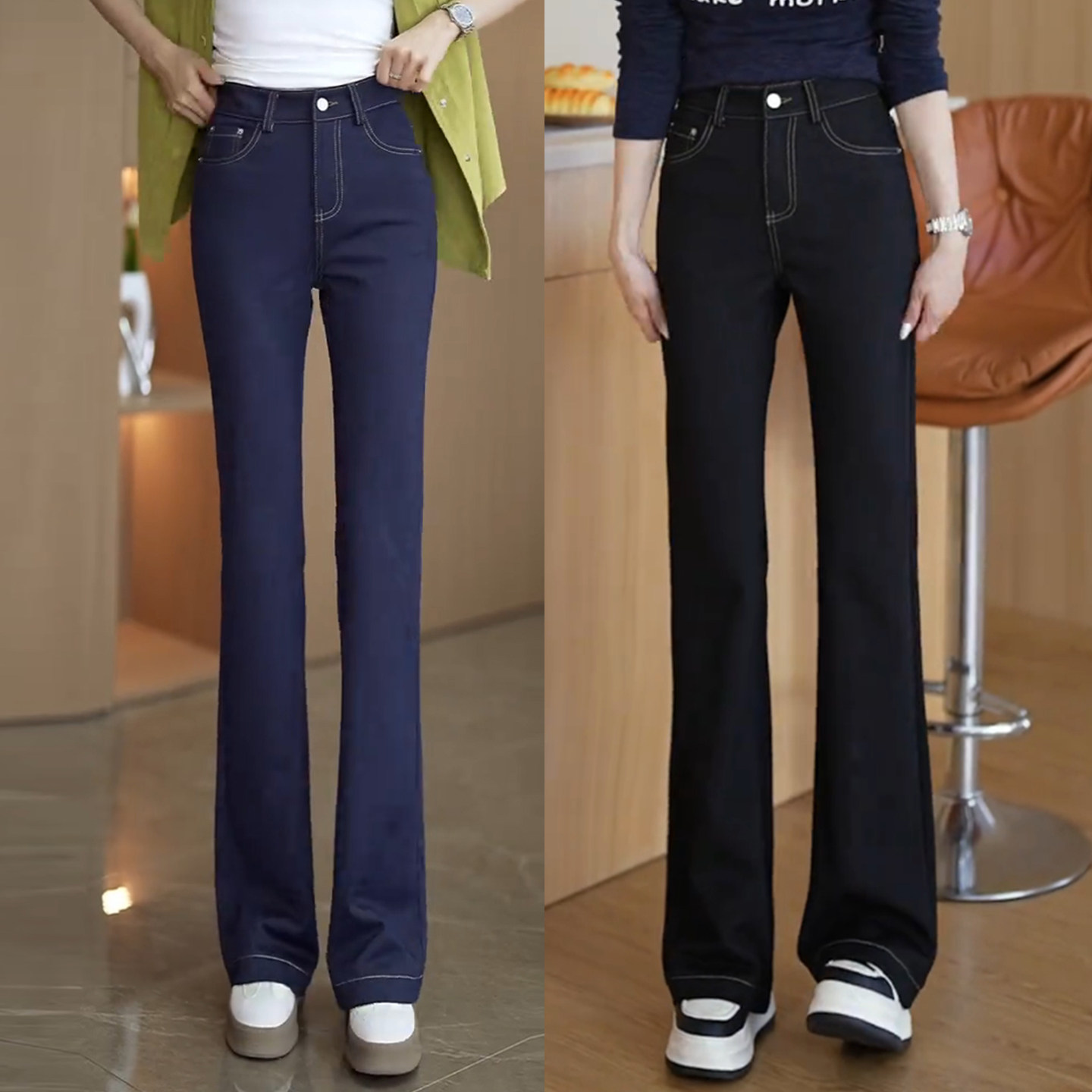 加绒高腰微喇牛仔裤女士秋冬2025新款百搭显瘦弹力垂感修身喇叭裤