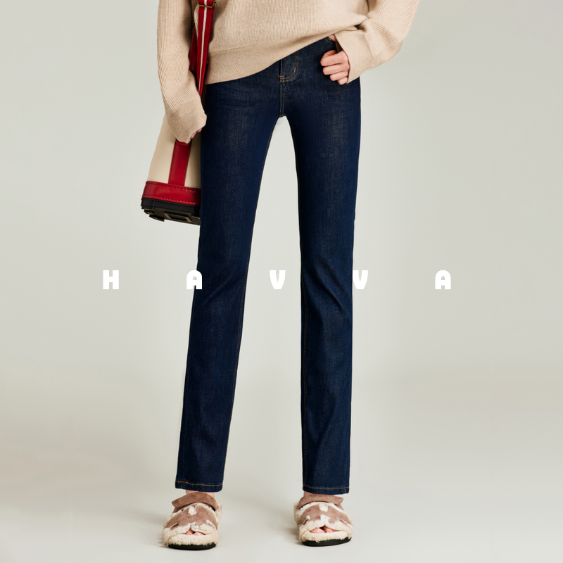 HAVVA显瘦长腿超好穿小直筒牛仔裤女士法棍烟管裤2025秋冬KN97401