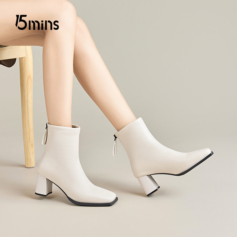 15mins法式及踝靴女秋冬2025新款高跟瘦瘦靴软皮方头短靴马丁靴子