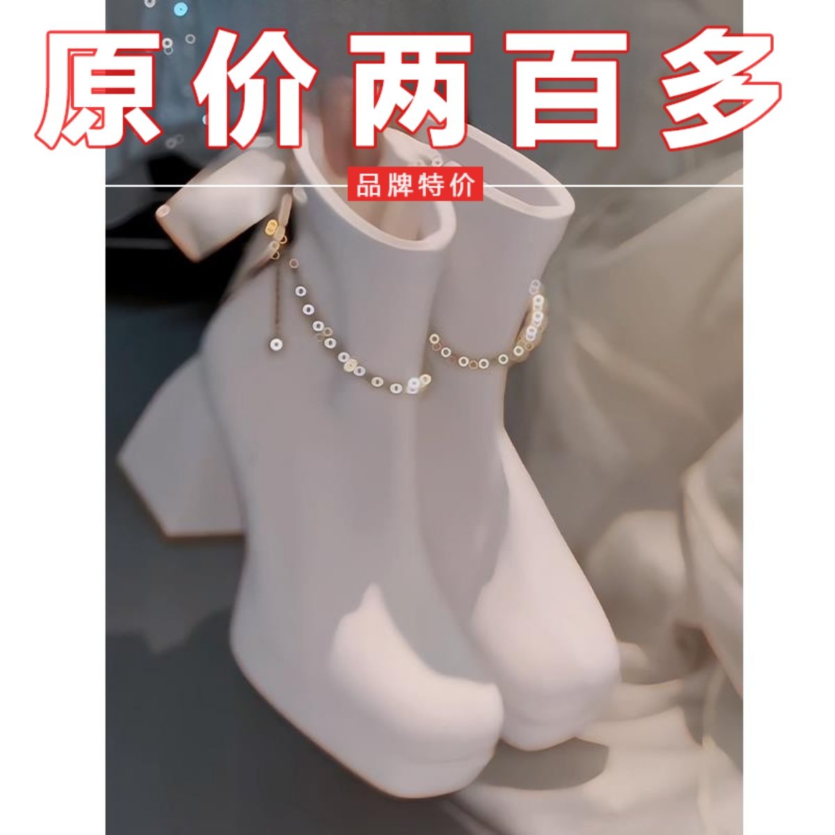 粗跟短靴女2025秋冬新款法式气质白色小个子高跟及踝靴瘦瘦时装靴