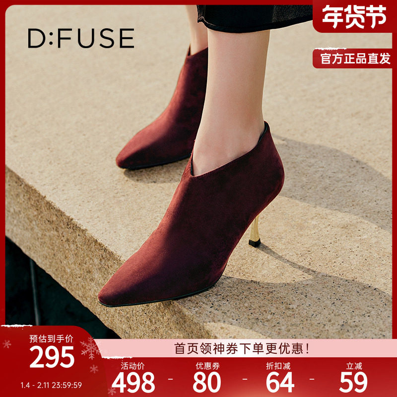 达芙妮尖头小短靴女加绒2025新款秋冬细跟高跟鞋气质及踝靴瘦瘦靴