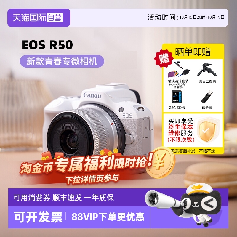 佳能r50v微单相机视频数码高清佳能官方旗舰店掌上Vlog直播专用