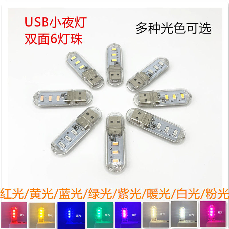 厂批6灯珠LED灯小夜灯USB双面灯网红灯USB电脑灯5V充电宝小夜灯