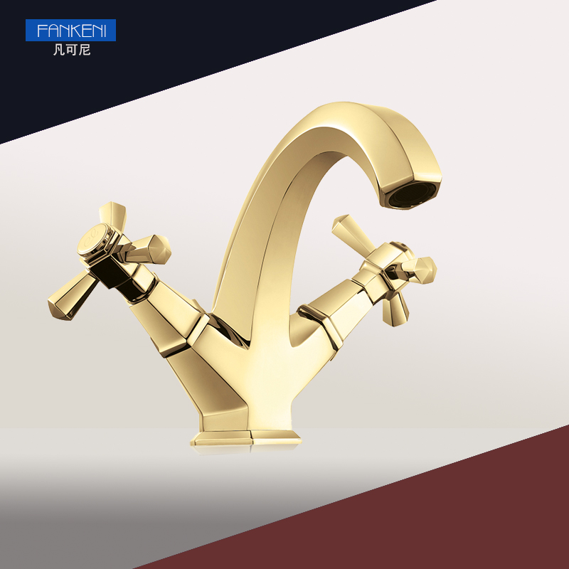 欧式单孔洗手盆金色冷热水龙头 浴室柜仿古龙头洗脸盆节水混水阀