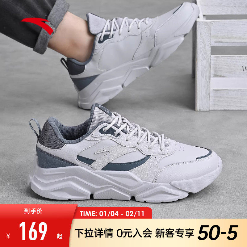安踏男鞋休闲鞋官网旗舰2026冬季新款潮流百搭软底皮面运动休闲鞋